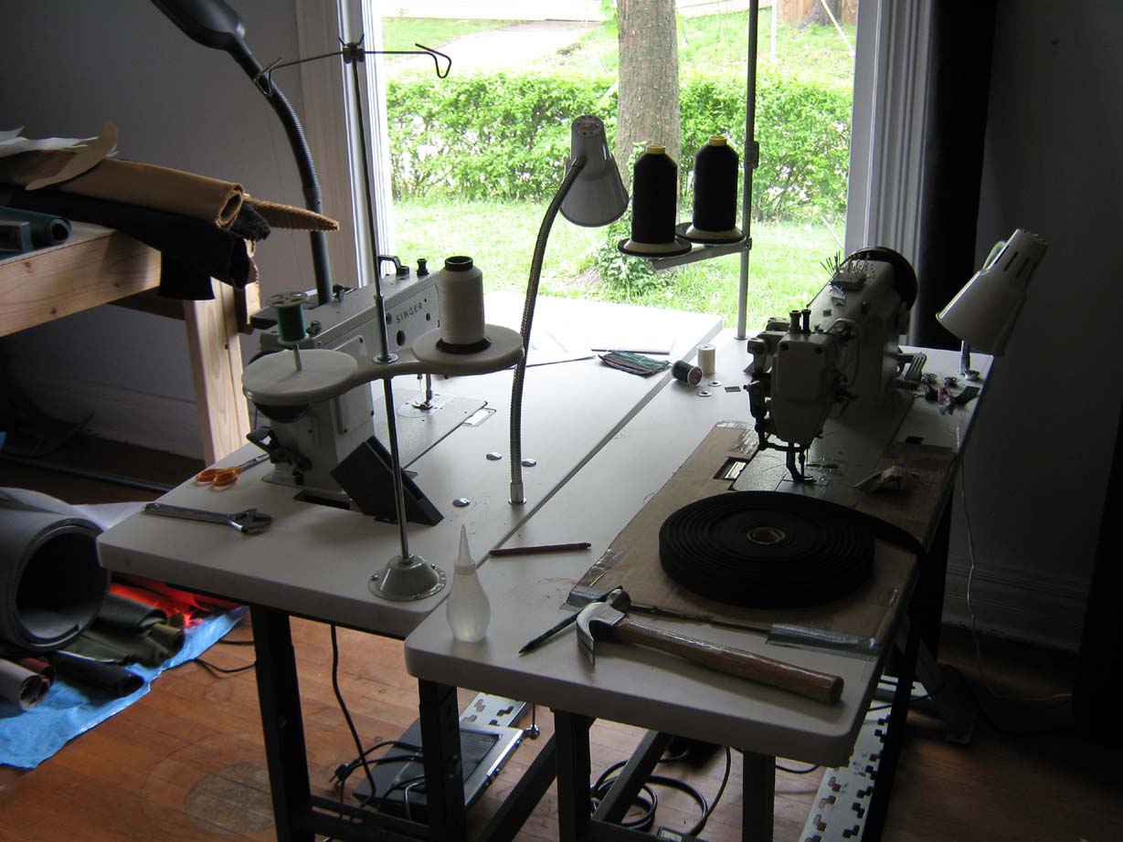 As far as I can tell, the Juki 1541, the Consew 206 (Seiko STH-8BLD-3) and the Tacsew 111w (modeled after the Singer 111w) are some of the most popular machines in the bagmaking and upholstery world. Of course, there are about a million other machines out there similar to these (Pfaffs are big in the upholstery biz, but new ones are ex-pen-sive!). All of these machines have compound feed (needle-feed, walking-foot...aka unison feed) and a large bobbin, making them awesome for sewing medium-heavy materials. (In the world of industrial machines, there are even heavier machines, for sewing leather and thicker upholstery and webbing.)
